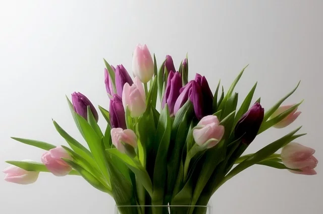 — Срежьте стебель под углом 45 градусов острым ножом (ножницы мнут сосуды!), а весенние цветы (тюльпаны, гиацинты) обрезают практически прямо.